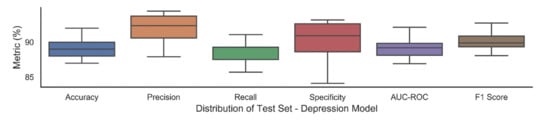 Box plots exhibiting average performance with standard deviation over 30 trials for depression.