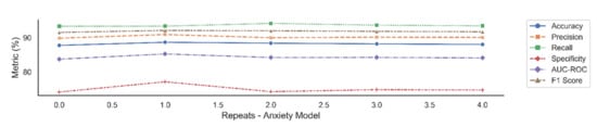 Average performance with standard deviation over 30 trials, for anxiety, over five repetitions.