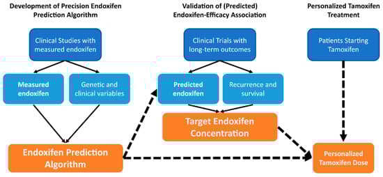 - Klopp-Schulze, L.; Joerger, M.; Wicha, S.G.; ter Heine, R.; Csajka, C.; Parra-Guillen, Z.P.; Kloft, C. Exploiting Pharmacokinetic Models of Tamoxifen and Endoxifen to Identify Factors Causing Subtherapeutic Concentrations in Breast Cancer Patients. Clin. Pharmacokinet. 2018, 57, 229–242. [Google Scholar] [CrossRef]