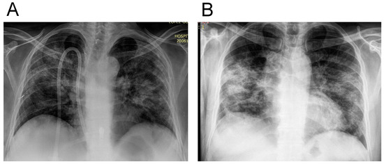 The majority of patients presented bilateral pneumonia with bilateral infiltrates on chest radiographs or CT scans, with some of them presenting consolidation, ground-glass opacifications, and linear opacities (Figure 1).