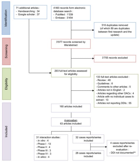 PRISMA flowchart of the rivaroxaban studies selection process DDI (drug-drug interaction) and OAC (oral anticoagulant), (a) or not understood from a pharmacological point of view.