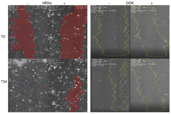 Real-time assessment of cell migration and proliferation of normal and dysplastic keratinocytes, treated (+) with sea-buckthorn seed oil. Treated cells (both normal and dysplastic) were less efficient in covering the denudated area. The effect was more prominent for dysplastic cells.