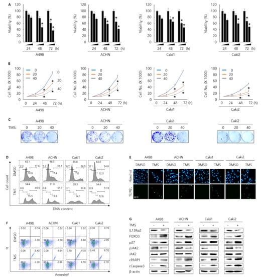 3.4. Telmisartan Suppresses Cell Proliferation and Induces Apoptosis and Cell Cycle Arrest in A498, ACHN, Caki1, and Caki2 Cells Via Inhibition of JAK2