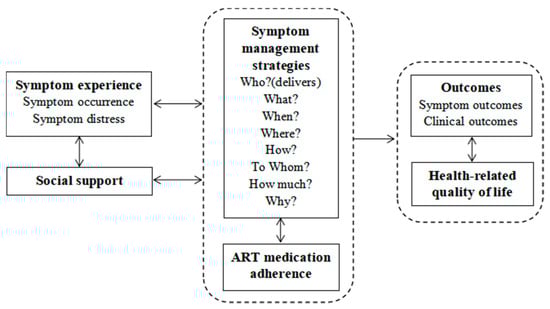 Chinese PLWH receive free ART based on the National Strategies of Four Frees and One Care for HIV/AIDS [9]. However, only publicly-funded domestic antiretroviral medications are free of charge. The integrase strand transfer inhibitors (INSTIs), which are the internationally recommended first-line treatment medication for PLWH [10], by contrast, are imported and needed to be paid out-of-pocket. Therefore, due to the issue of affordability, instead of taking these imported INSTIs, most Chinese PLWH choose to take free ART medications, e.g., efavirenz (EFV) or lopinavir/ritonavir (LPV/r). These medications may increase their risks for medication toxicity and symptoms of distress (EFV may lead to rash and sleep disorders, LPV/r may lead to diarrhea [11]). Evidence also showed that PLWH in developing countries were disproportionally affected by mental symptoms compared to their counterparts in developed countries [12]. The prevalence of depression and anxiety symptoms among Chinese PLWH is 61% and 43%, respectively [13]. The symptom burden may seriously affect PLWH’s ART medication adherence, clinical prognosis, and quality of life [3,8,14]. Furthermore, Chinese PLWH’s needs for symptom management are unmet due to their severe symptom burden, fear of asking for help because of HIV-related stigma, and difficulties in getting timely assistance for symptom management from medical staff [15,16]. Therefore, the development of symptom management for Chinese PLWH is urgently needed.