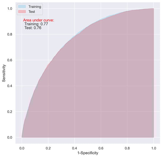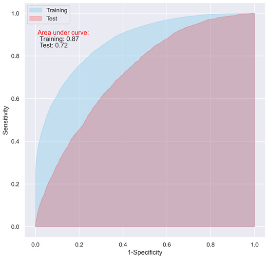 The overfitting issue presented in Figure 1 and Figure 2 could be alleviated with the hyperparameter optimization in the models using all the variables, however, the performance of the models on the test dataset did not show obvious improvement, which fluctuated between approximately 0.70 and 0.74.
