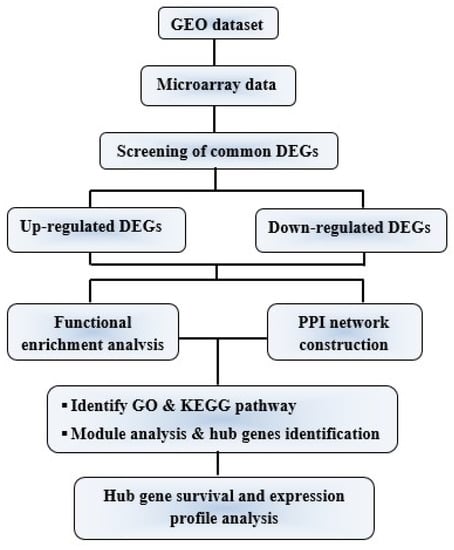 Nowadays, an integrative systems biology approach is a promising technique, which has been applied to predict novel molecular oncogenes and gene signatures using existing gene expression profiles from Gene Expression Omnibus (GEO) [24,25,26,27,28,29,30,31].