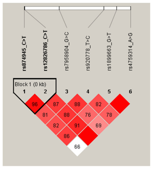 3.4. Haplotype Analysis of Polymorphisms with Synergistic Effects
