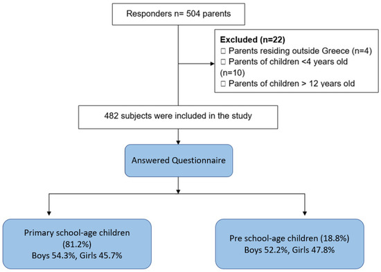 An online survey was conducted via a cloud-based short questionnaire on Google Forms, which was disseminated via institutional social accounts on the social networking platform Facebook and focused on the parents of children aged from 4 to 12 years (kindergarten and primary school) without any promise of reward.