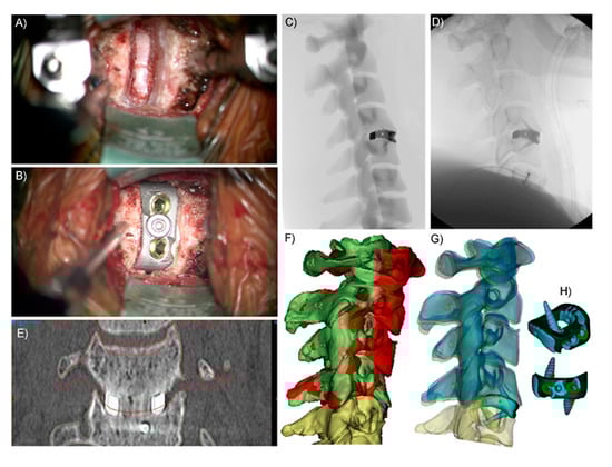 - Amin, T.; Lin, H.; Parr, W.C.H.; Lim, P.; Mobbs, R.J. Revision of a Failed C5-7 Corpectomy Complicated by Esophageal Fistula Using a 3-Dimensional−Printed Zero-Profile Patient-Specific Implant: A Technical Case Report. World Neurosurg. 2021, 151, 29–38. [Google Scholar] [CrossRef]