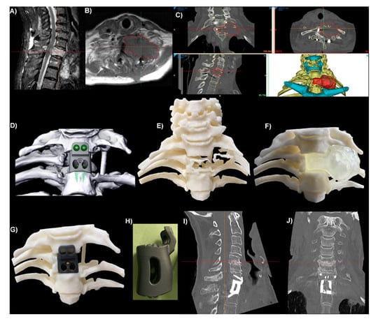 - Li, X.; Wang, Y.; Zhao, Y.; Liu, J.; Xiao, S.; Mao, K. Multilevel 3D Printing Implant for Reconstructing Cervical Spine With Metastatic Papillary Thyroid Carcinoma. Spine 2017, 42, E1326–E1330. [Google Scholar] [CrossRef] [PubMed]