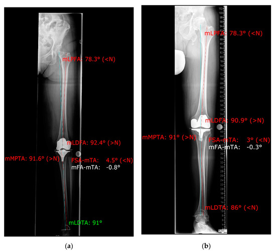 - Maderbacher, G.; Baier, C.; Benditz, A.; Wagner, F.; Greimel, F.; Grifka, J.; Keshmiri, A. Presence of rotational errors in long leg radiographs after total knee arthroplasty and impact on measured lower limb and component alignment. Int. Orthop. 2017, 41, 1553–1560. [Google Scholar] [CrossRef]