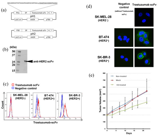 - Kikuchi, T.; Shimizu, H.; Akiyama, Y.; Taniguchi, S. In situ delivery and production system of trastuzumab scFv with Bifidobacterium. Biochem. Biophys. Res. Commun. 2017, 493, 306–312. [Google Scholar] [CrossRef]