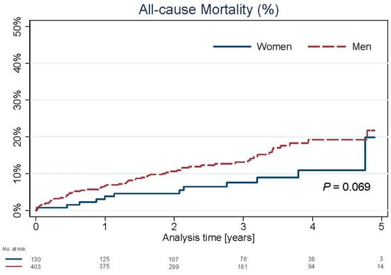 - Trabattoni, D.; Teruzzi, G.; Montorsi, P.; Fabbiocchi, F.; Gili, S.; Calligaris, G.; Grancini, L.; Galli, S.; Ravagnani, P.; Bartorelli, A. Comparison of the Effectiveness of Percutaneous Intervention of the Left-Main Coronary Artery With Everolimus-Eluting Stents in Women -Vs- Men. Am. J. Cardiol. 2019, 124, 1357–1362. [Google Scholar] [CrossRef] [PubMed]
