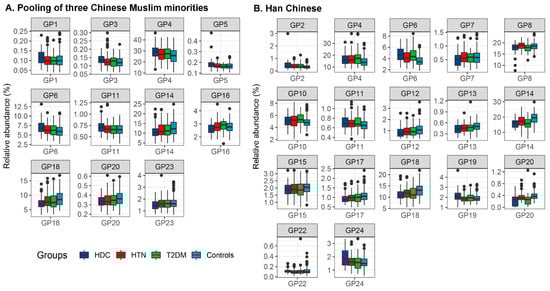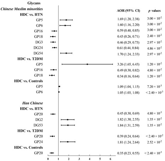 3.3. The Comparison of IgG N-Glycans between the Chinese Muslim Ethnic Minorities Pooled Samples and the Han Chinese Samples