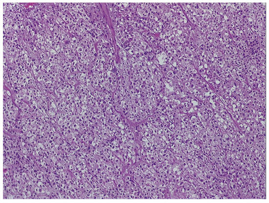 Epithelioid GISTs are composed of rounded epithelioid cells that have a clear, eosinophilic cytoplasm and round or oval nuclei. Tumors of this type are located mostly in the stomach, and more often their KIT expression is negative and can harbor PDGFRA [25,26].