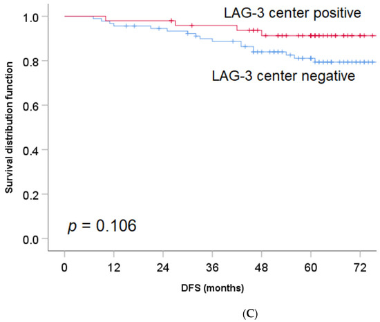 3.3. LAG-3 Expression on TILs and Its Association with DFS
