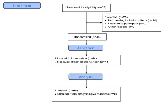 - Schulz, K.F.; Altman, D.G.; Moher, D.; For the CONSORT Group. CONSORT 2010 Statement: Updated guidelines for reporting parallel group randomised trials. BMC Med. 2010, 8, 18. [Google Scholar] [CrossRef] [Green Version]