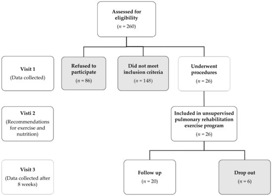 Study flow diagram. Patients which did not meet inclusion criteria were 148. More specifically, 13% with relative contraindications for 6 MWT (e.g., increased resting arterial blood pressure), 22% with inability to complete the balance test, 30% with BMI above 40 kg/m2, 8% with mental illness (e.g., depression, anxiety disorders) and 27% with musculoskeletal disability (e.g., injuries of the muscles, joints etc.).
