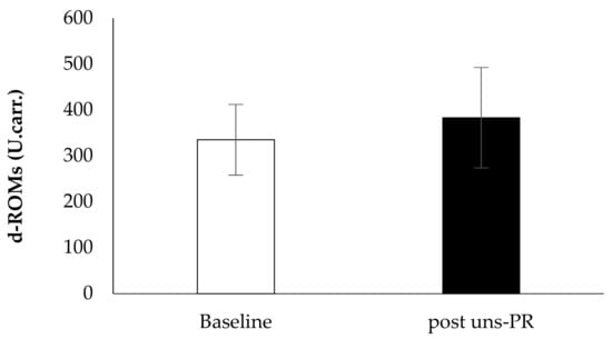 Oxidative stress marker d-ROMs before and after PR.