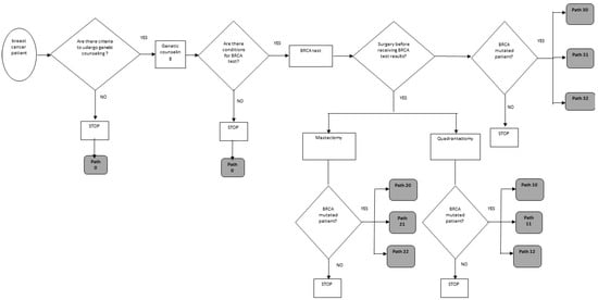 - Path 30: Surgery without preference for therapeutic chance (mastectomy unilateral + radiological follow-up or bilateral mastectomy) after receiving BRCA test results;