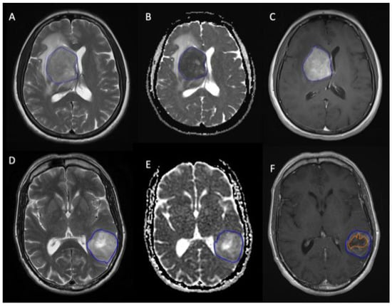 - Guo, A.C.; Cummings, T.J.; Dash, R.C.; Provenzale, J.M. Lymphomas and high-grade astrocytomas: Comparison of water diffusibility and histologic characteristics. Radiology 2002, 224, 177–183. [Google Scholar] [CrossRef]