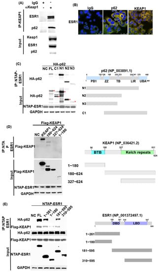 3.1. ESR1, KEAP1, and p62 Interact with Each Other and Are Capable of Forming a Complex