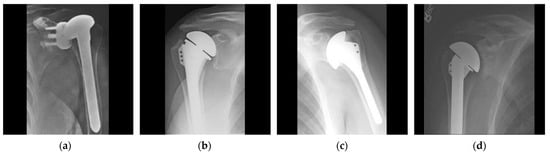 A shoulder arthroplasty needs to be revised over time for different reasons, such as a severe fracture, deep infection in the wound, loosened or dislocated implant, or failure of the previous surgery [,]. In 2017, the cost to the US healthcare system for the revision of 10,290 shoulder arthroplasty patients was anticipated to be 205 millon dollars, which has been increasing annually []. Orthopedic prostheses are made of highly developed biomaterials. Owing to their intricate designs, they vary by model and manufacturer and have an effect on the apparatus alignment []. Identifying and properly seating prostheses is a crucial surgical step that helps avoid common complications, such as bone and blood losses. Therefore, selecting and identifying the correct prosthesis model for a particular patient is necessary for personalized medicine.