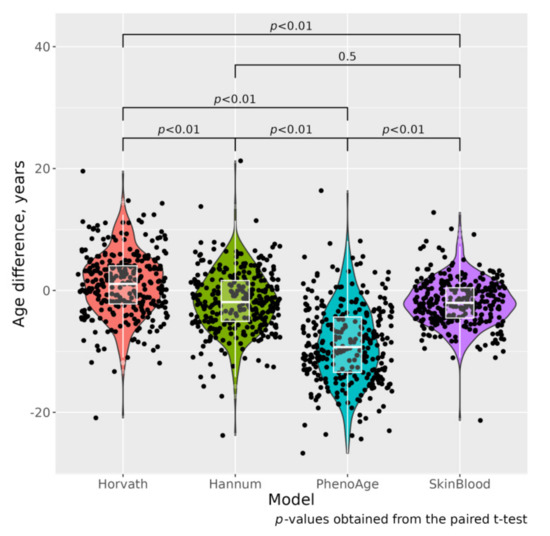 Third, we used four estimators of epigenetic age (Horvath’s, Hannum’s, PhenoAge and Skin and Blood clocks) with established precision in estimating chronological age, age-related diseases and mortality [16] and constructed with a variety of approaches (blood-based, pan-tissue or phenotype-based).