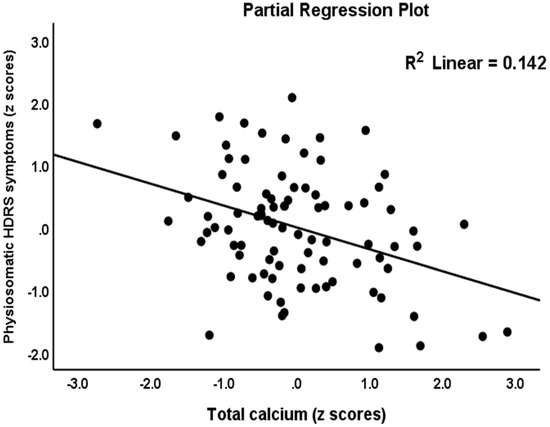| Calcium | −0.228 | −2.70 | 0.009 |
