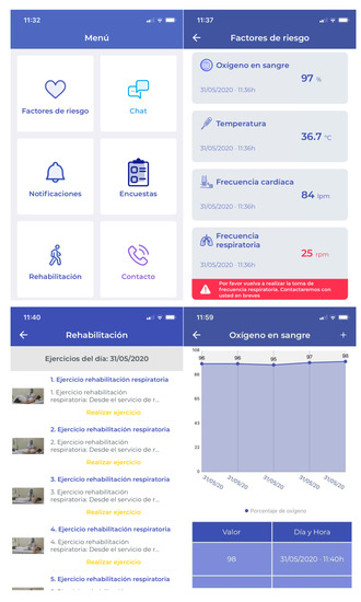 The aim of our study was to adapt and validate the use of Farmalarm, a smartphone application (app) originally developed by the Stroke Unit at Hospital Universitari Vall d’Hebron in Barcelona, Spain [11]. This app allowed close and personalized monitoring of 74 COVID-19 patients after hospital discharge. The system enabled a two-way communication between the outpatients and a multidisciplinary team in order to detect possible complications (signs of pulmonary embolism, reappearance of respiratory failure, among others). Patients were provided with information about rehabilitation exercises, and they were able to consult any doubt.