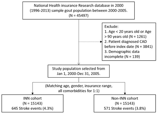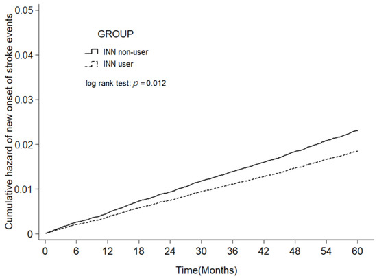 3.2. Risk of New-Onset Stroke between Benzbromarone Users and Benzbromarone Non-Users