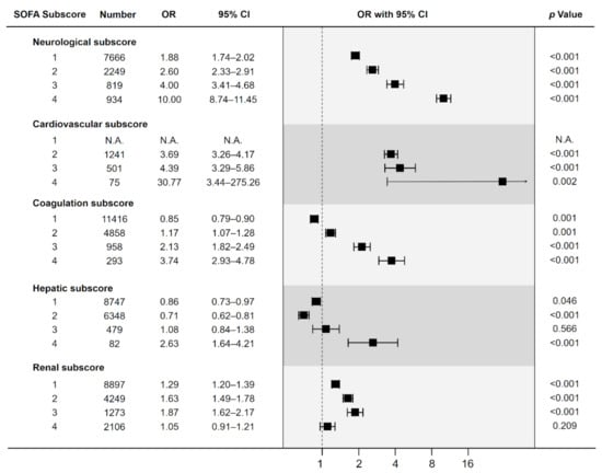 4.1. Prognostic Association in SOFA Subscores