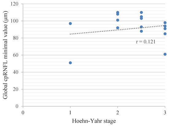 Pearson’s Correlation between the Hoehn−Yahr stage and the Global cpRNFL Value.