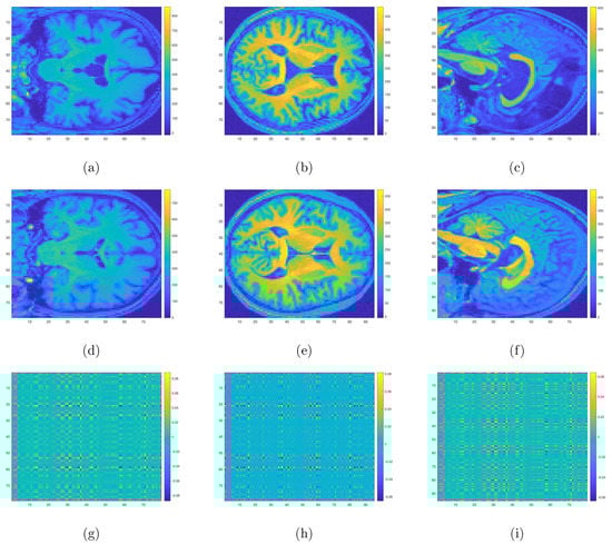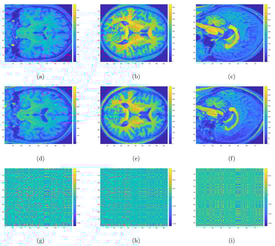 Original MRI images (a–c) and normalized MRI images (d–f). The original images of size (512, 512, 128) were normalized using Statistical Parametric Mapping. Individual images for all subjects were mapped to a common reference space with size (79, 95, 79) to reduce the complexity.