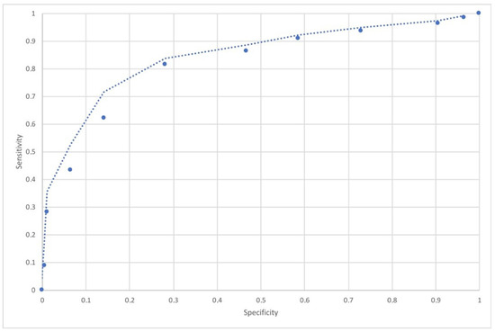 In the validation data set, the area under the ROC curve was 0.85 (95% CI 0.71–0.93) (Figure 3).