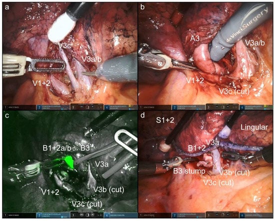 - Cerfolio, R.J.; Watson, C.; Minnich, D.J.; Calloway, S.; Wei, B. One hundred planned robotic segmentectomies: Early results, technical details, and preferred port placement. Ann. Thorac. Surg. 2016, 101, 1089–1095. [Google Scholar] [CrossRef]