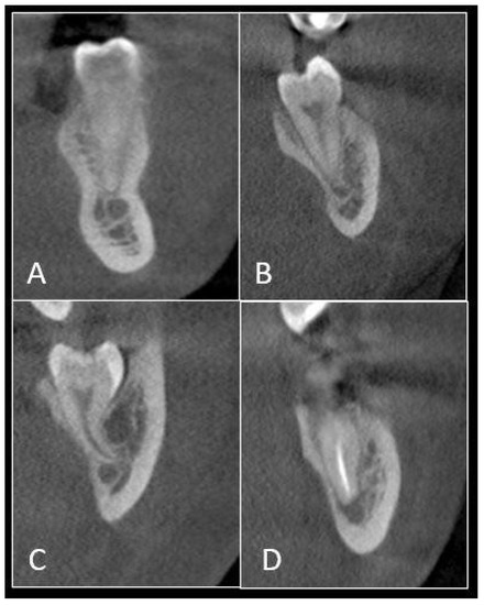 - Huumonen, S.; Kvist, T.; Grondahl, K.; Molander, A. Diagnostic value of computed tomography in re-treatment of root fillings in maxillary molars. Int. Endod. J. 2006, 39, 827–833. [Google Scholar] [CrossRef] [PubMed]