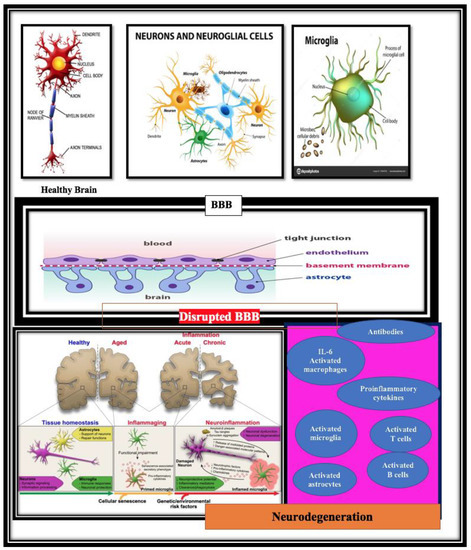 Presumably, chronic inflammation, in the context of a long-lasting infection that lasts for a prolonged time, without fail can destroy healthy brain cells. Indeed, when neuroinflammation is not settled, the effectiveness of the immune system decreases dramatically, which leads to adverse results, leading in turn to harmful consequences, contributing to the alteration in the brain health status and neuronal loss, which is considered to be at the forefront of the causes of neurodegenerative disorders [114,115].