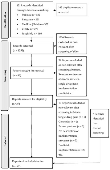 APA StyleYoussef, E., Bhattacharya, D., Sharma, R., & Wright, D. J. (2022). A Theory-Informed Systematic Review of Barriers and Enablers to Implementing Multi-Drug Pharmacogenomic Testing. Journal of Personalized Medicine, 12(11), 1821. https://doi.org/10.3390/jpm12111821