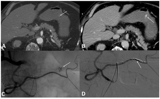 - Aina, R.; Oliva, V.L.; Therasse, É.; Perreault, P.; Bui, B.T.; Dufresne, M.-P.; Soulez, G. Arterial Embolotherapy for Upper Gastrointestinal Hemorrhage: Outcome Assessment. J. Vasc. Interv. Radiol. 2001, 12, 195–200. [Google Scholar] [CrossRef]