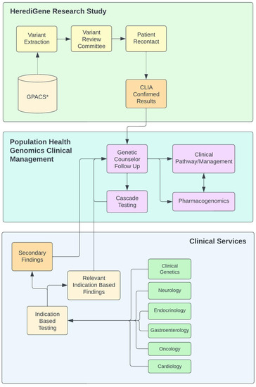 Diagram of population health genomics clinical workflow. * (GPACS) Genotype-Phenotype Archiving and Communication System.