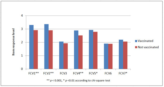 Distribution of FCV-19s responses by vaccination status.