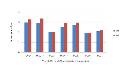 The approximately 80% of the sample that was fully vaccinated expressed higher fear levels (p < 0.01). This is further elaborated in Figure 1, which shows that vaccinated individuals reported more fear than their unvaccinated counterparts on each of the seven fear dimensions measured by the FCV-19s instrument, and the differences in most cases were statistically significant (p < 0.01 or better). Furthermore, individuals who had previously caught the virus expressed more fear than those who had not (p < 0.05), and according to Figure 2, this is more evident in the FCV-19s items 1 (being afraid), 2 (being uncomfortable), 4 (being afraid of dying) and 5 (being anxious about COVID-19 news). On the other hand, having been hospitalized for COVID-19 did not appear to affect fear or physical/mental health. Finally, participants who were regularly updated about the virus and recent developments showed higher levels of fear and worse physical health (p < 0.001) than others who rarely or almost never received updates.