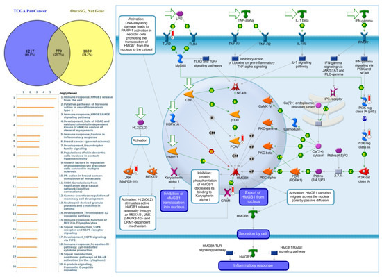 Expression of the protein tyrosine phosphatase non-receptor type 13 (PTPN13) signaling pathway in lung cancer (from Metacore). The functional analysis of “Immune response_HMGB1 release from the cell” was correlated with lung cancer development.