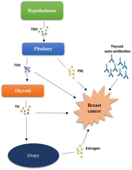 - Shi, X.Z.; Jin, X.; Xu, P.; Shen, H.M. Relationship between breast cancer and levels of serum thyroid hormones and antibodies: A meta-analysis. Asian Pac. J. Cancer Prev. 2014, 15, 6643–6647. [Google Scholar] [CrossRef][Green Version]