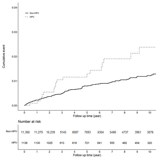 Figure 1 shows the Kaplan–Meier curves of the incidence of EP in individuals with and without HPV infection.