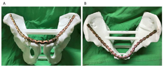 - Hung, C.C.; Li, Y.T.; Chou, Y.C.; Chen, J.E.; Wu, C.C.; Shen, H.C.; Yeh, T.T. Conventional plate fixation method versus pre-operative virtual simulation and three-dimensional printing-assisted contoured plate fixation method in the treatment of anterior pelvic ring fracture. Int. Orthop. 2019, 43, 425–431. [Google Scholar] [CrossRef] [PubMed]