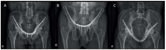 - Morgan, S.J.; Jeray, K.J.; Phieffer, L.S.; Grigsby, J.H.; Bosse, M.J.; Kellam, J.F. Attitudes of orthopaedic trauma surgeons regarding current controversies in the management of pelvic and acetabular fractures. J. Orthop. Trauma 2001, 15, 526–532. [Google Scholar] [CrossRef]