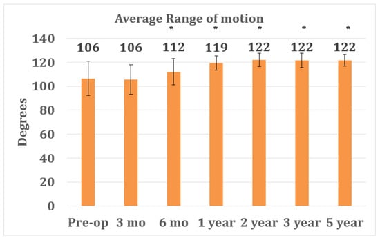 - Chaudhary, R.; Beaupre, L.A.; Johnston, D.W. Knee range of motion during the first two years after use of posterior cruciate-stabilizing or posterior cruciate-retaining total knee prostheses. A randomized clinical trial. J. Bone Joint Surg. Am. 2008, 90, 2579–2586. [Google Scholar] [CrossRef]