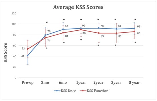 - Noble, P.C.; Scuderi, G.R.; Brekke, A.C.; Sikorskii, A.; Benjamin, J.B.; Lonner, J.H.; Chadha, P.; Daylamani, D.A.; Scott, W.N.; Bourne, R.B. Development of a new Knee Society scoring system. Clin. Orthop. Relat. Res. 2012, 470, 20–32. [Google Scholar] [CrossRef] [PubMed] [Green Version]